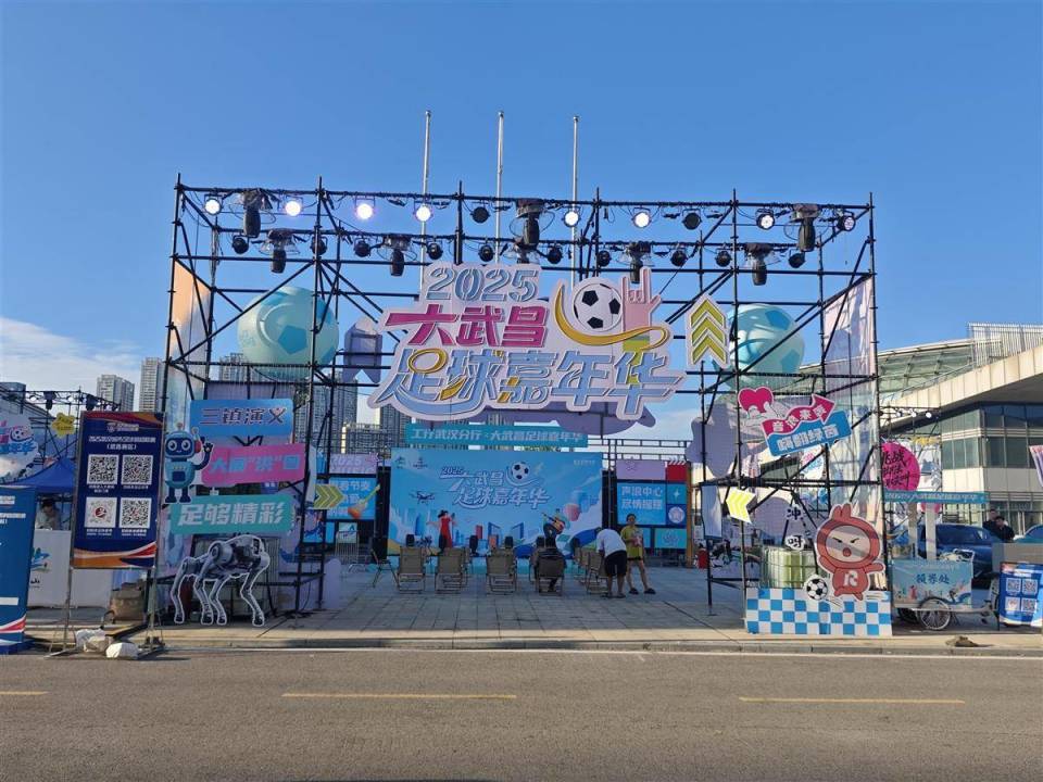 赛事期间,体育场外的“2025大武昌足球嘉年华”同步热闹开启,设置“市集”与“嘉年华”两大区域。记者现场看到,市集汇聚文创非遗产品、特色餐饮、体育潮玩等业态类型,引入小米汽车、中国邮政等大品牌布展,打造“体育 商业”消费场景。